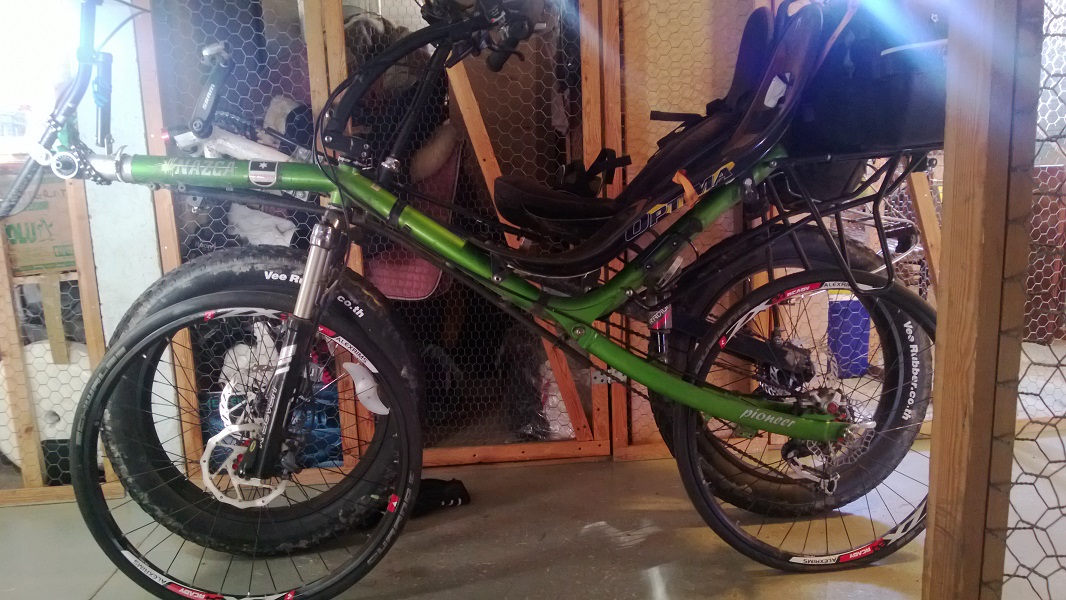 Mallailin tänään Pioneeria ja 24" läskiä rinnakkain, tämän hetken mielihalut on kokeilla tehdä Pioneerista läski. Pioneeriin pitää tehdä uusi takahaarukka ja vähän alkuperäistä pidempänä. Tällöin suattaapi olla, että pari senttiä on pidempi akseliväli kuin tuossa toisessa läskissä. Aika näyttää miten muut kulmat muuttuu, tai kannattaisiko niitä muuttaa? Penkille varmaan teen uuden takatuen, että sen saa reilusti pystympään.152 kammilla mahtuu käsittääkseni ajamaan mutta talouden lyhimmät laitan kiinni. Uudella haarukalla pääsen testaamaan toimiiko polkimien etäisyydet käytännössä. Taitaa se istuinkorkeuskin nousta yli takana olevan läskin.
