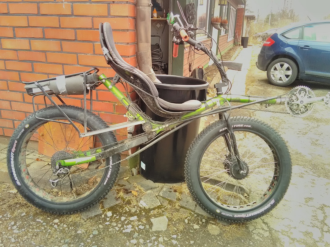Eihän 30kg mikään paha vielä ole. Jos tuohon laittaisi about 20Ah/48V-akun ja suoravetomoottorin, niin oltaisiin lähellä 40kg.