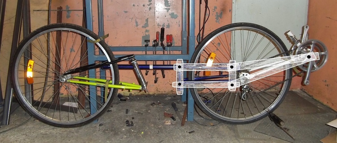 Esikuvapyörä on ajettava, joten geometria kopiomalla tulee varmasti ajettava epäilyistä riippumatta. Pyörän mielekkyydestä en tiedä, mutta se ei varmasti tässä pääasia olekaan
