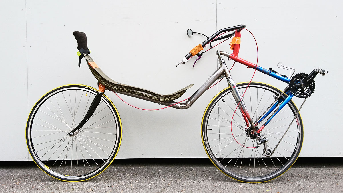 Jokin kuvassa pistää silmään. :? Onko tuossa pienempi kiekkokoko, vai miksi istuin on noin takana. Olisi myös kiinnostavaa nähdä kuva kuskin kanssa, jotta näkyisi polven ja ohjaustangon väistösuhteet. Olisiko tuo ohjaustanko ollut mahdoton, jos kammet olisivat kauempana edessä? Siis foto pyörästä kuskin polvi maksiasennossaan ylhäällä olisi kiva ylläri. :)