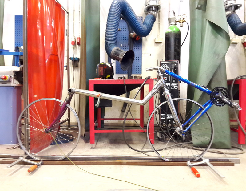 Mikäli joku tekee samanlaista niin tässä vinkki ÄLÄ POISTA luovuttajarungon yläputkea - se on juuri oikeassa paikassa - siihen vaan kiinntys tangolle.