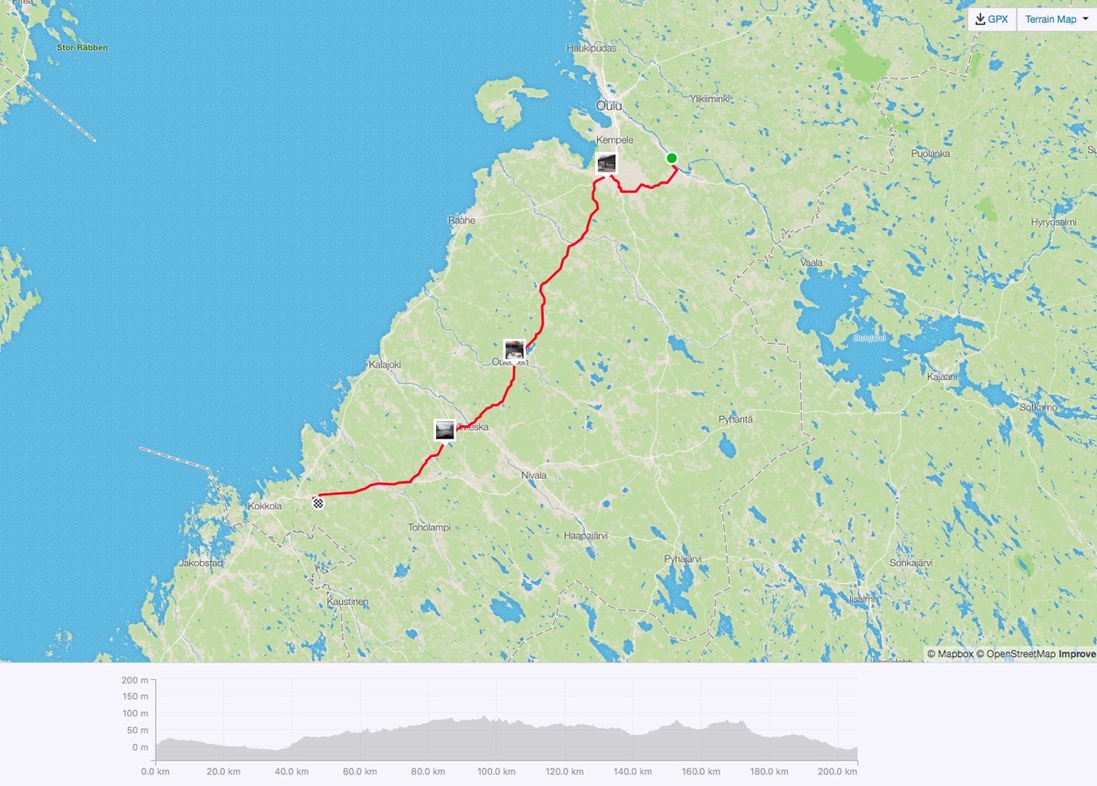 Huomenna olisi sitten pisin siivu. Reilut 200 km Muhokselta takaisin kotiin. Ajattelin ajaa tuosta Tyrnävän kautta Nelostielle. Se vaikuttaa kivalta pätkältä. Sitäkin on tullut muutaman kerran autolla ajettua ja olen miettinyt, että tämä tie olisi varmaan kiva pyöräillä. Siitä sitten Liminkaan ja Oulaisten ja Ylivieskan kautta kotiin.