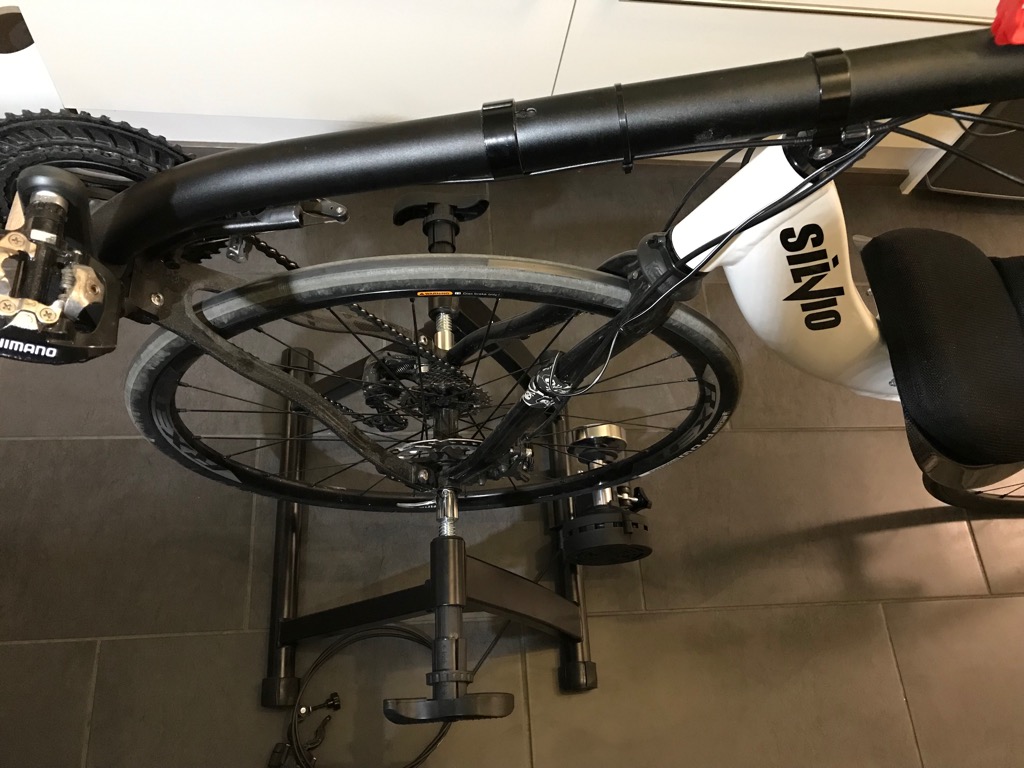 Tuossa lähikuvaa trainerista. Oli niin ahtaassa paikassa ettei mahtunut koko pyörää kuvaamaan.