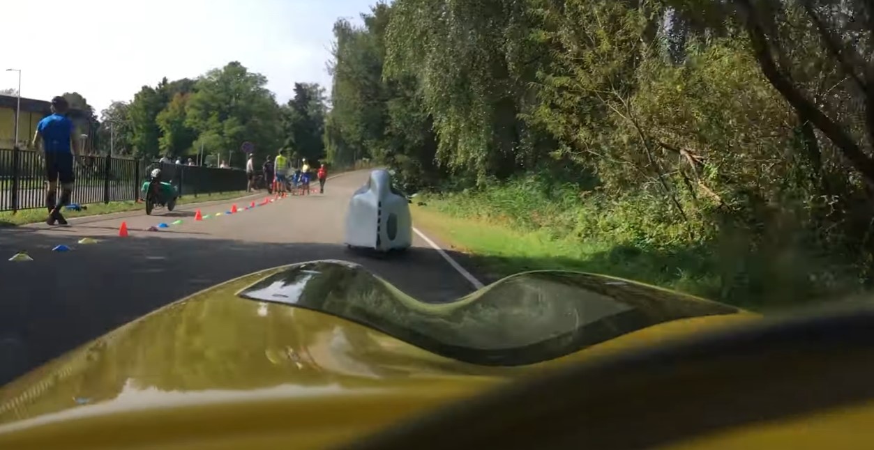 Muutama velomobiilin kaatokin tapahtui takarenkaan puhkeamisen takia.