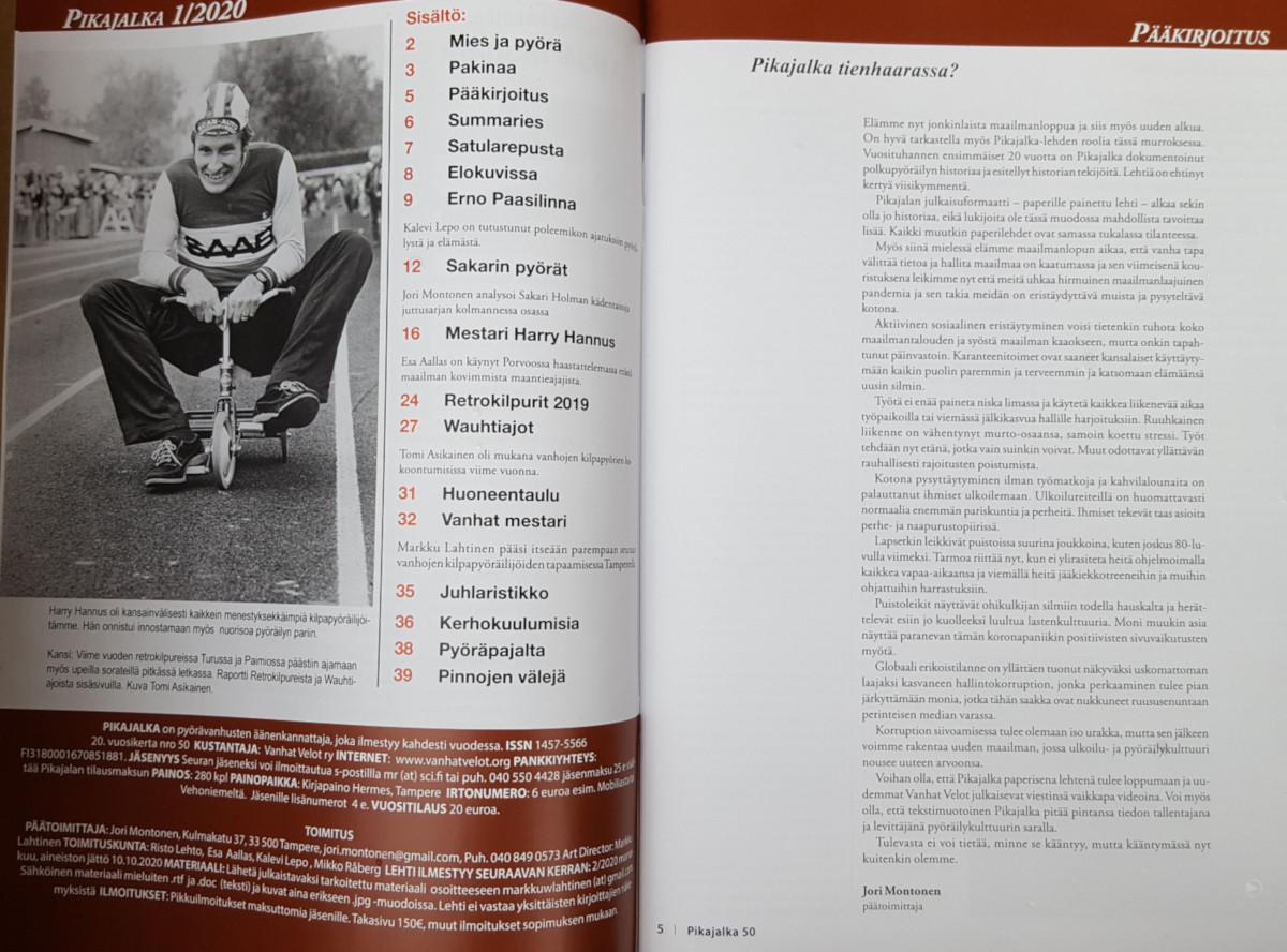 Pikajalattomia tietysti vaivaa, millaisista jutuista on kyse. Laitan tähän kuvan sisältösivusta, jossa näkyy pääkirjoitukseni ja linkin josta voi lukea keskeneräisen version Sakrin pyörät juttusarjan kolmannesta osasta.