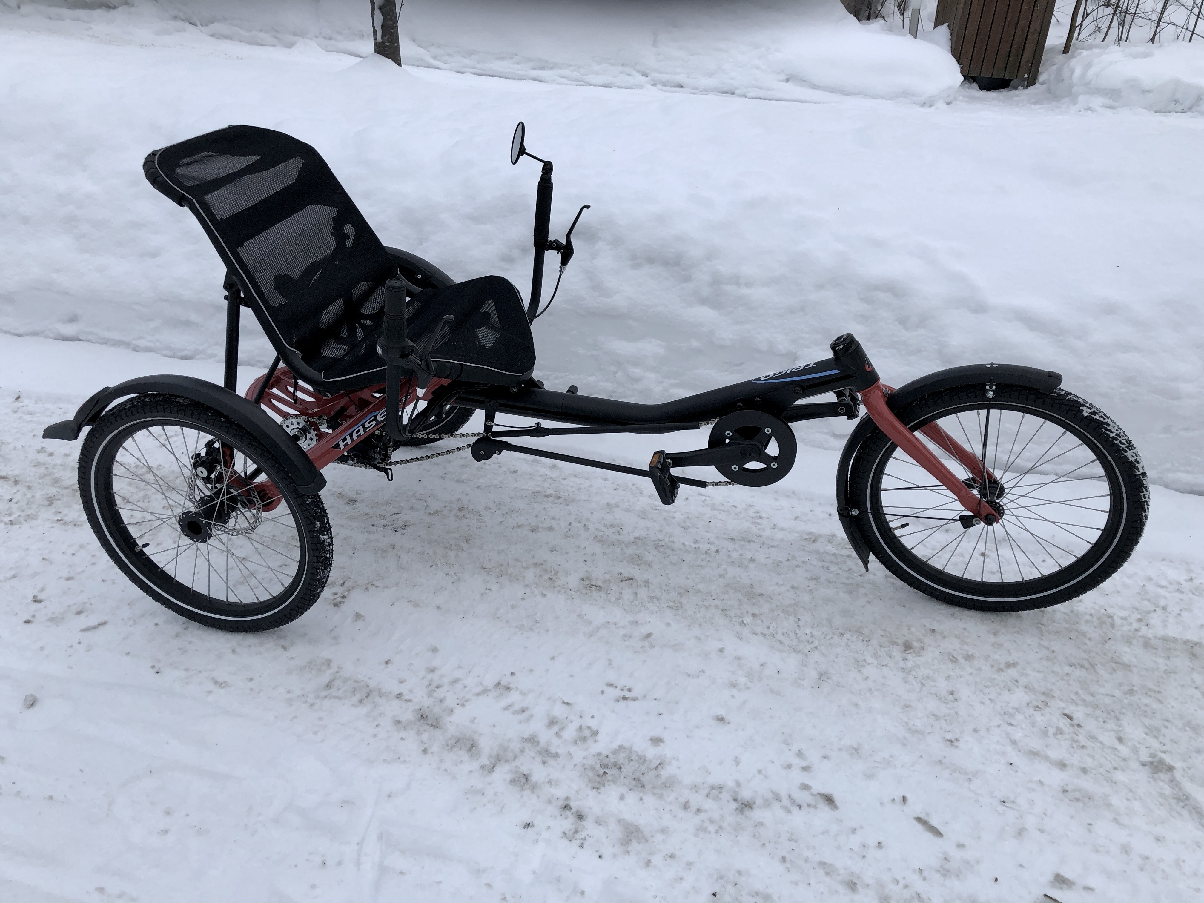 Delta, alaohjaus, levyjarrut ja nexus vaihteisto. Eipä tuosta trike enää parane. Vielä helppo ja järkevä sähköistysmahdollisuus. Ja minä en helposti ole liekeissä tehdaspyöristä!