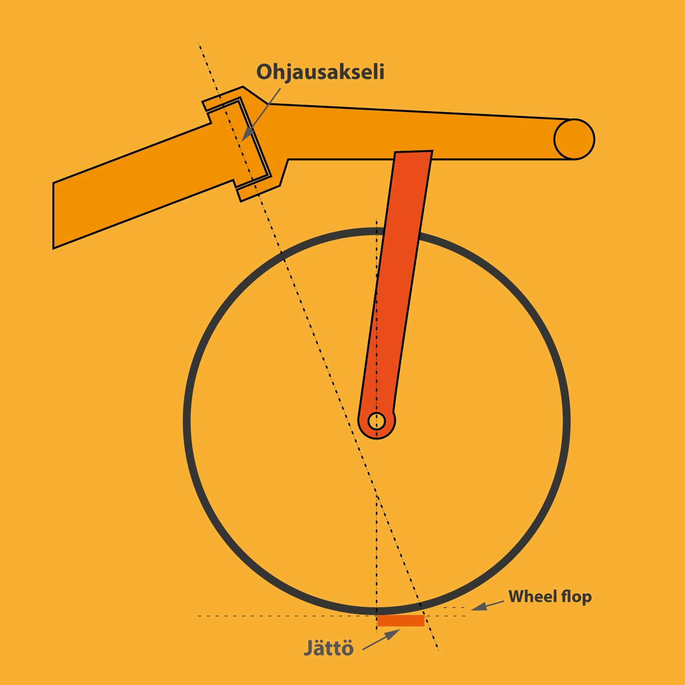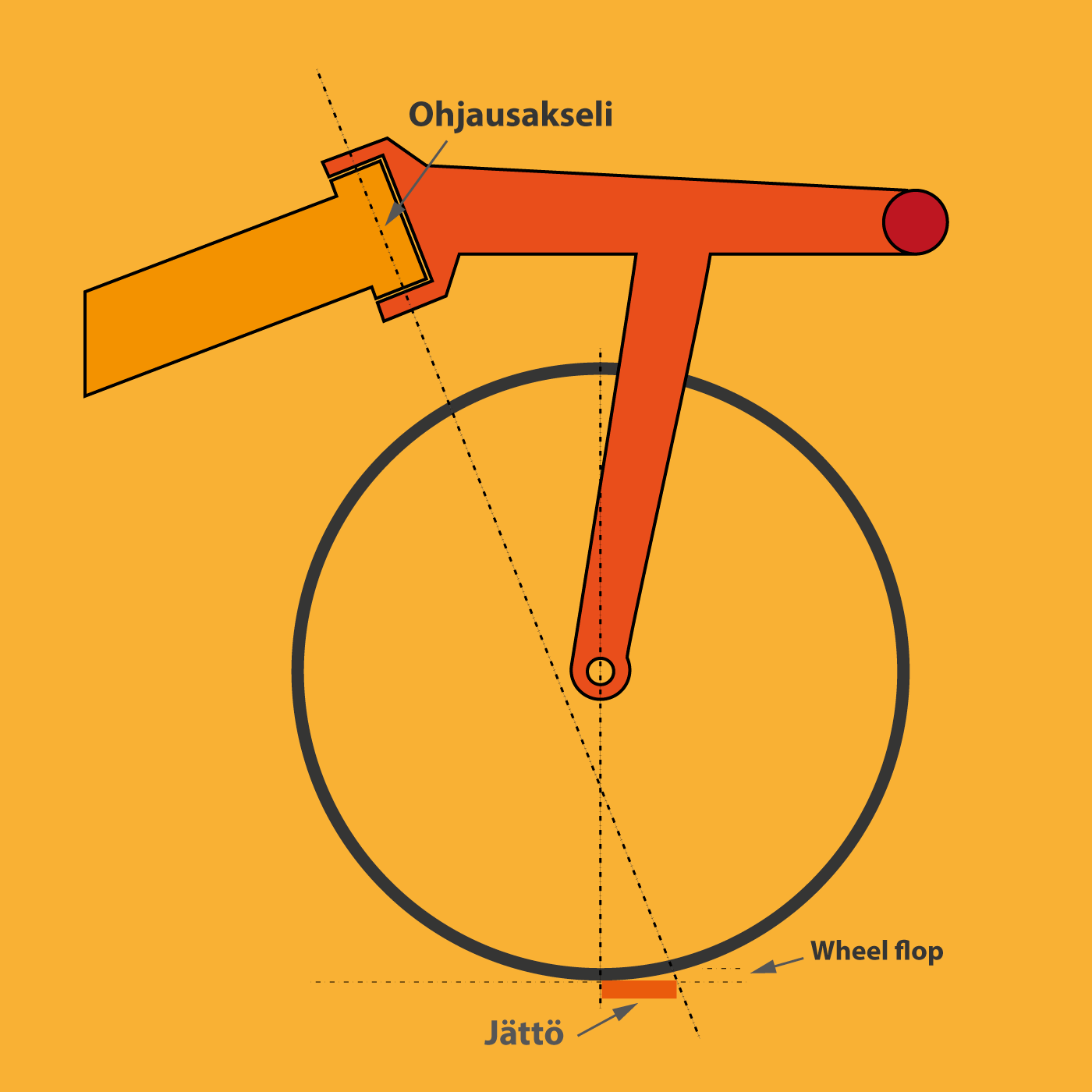 Sivukuvassa on pallot 1 ja 2. Niillä saa käsityksen efektiivisen jätön käsitteestä. Sijoita mielessäsi 10kg kahvakuula vuorotellen kumpaankin palloon ja lähde kallistamaan pyörää kaarteeseen, kumpaan suuntaan ohjaus kääntyy?