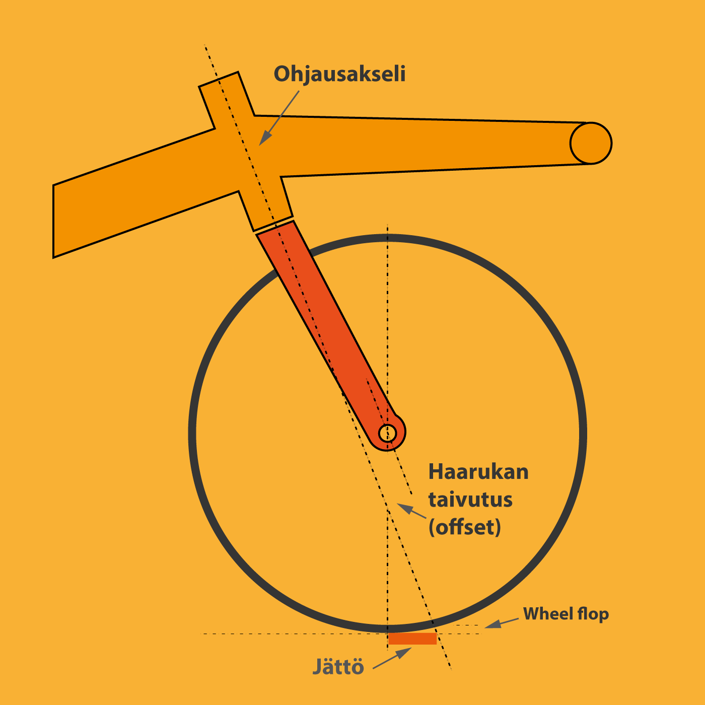 Olkapoikkeama 2cm, jotta jarrutus eikä töyssyt ohjaa