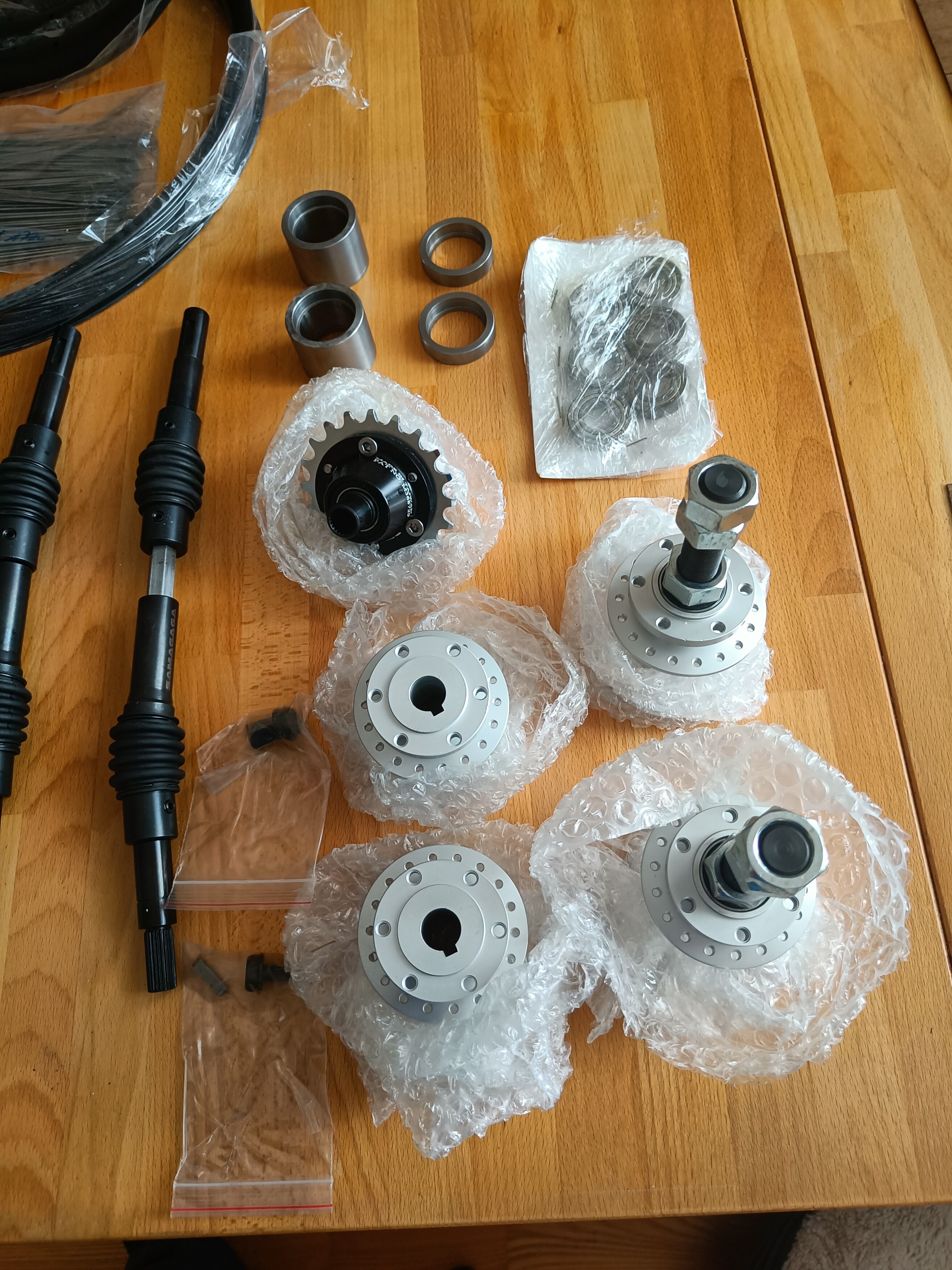 Eli myynnissä vetoakselisto laakereineen, jopa sorvatut laakeripesät löytyy.