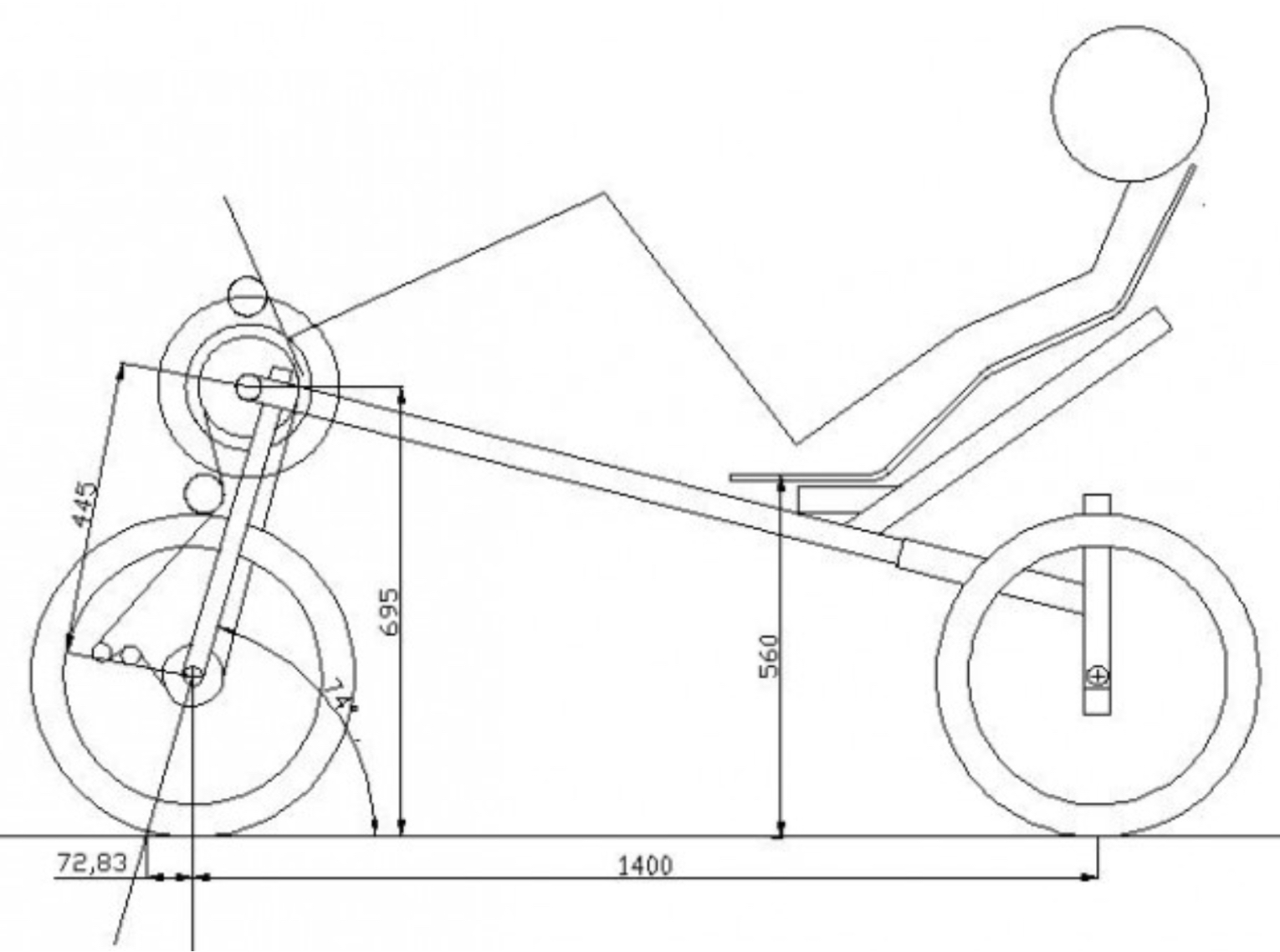 Vertaa kuvasi ja minun Splitterin ketjulinjaa: Haarukan offsetti on 0 ja kulma 75 astetta joka antaa sopivan jätön (sininen viiva) 20"/406 pyörillä mielestäni. Napavaihde on siksi hyvä valinta tälläiseen, kun ketjulinjan suunta pysyy samana. viewtopic.php?t=5320
