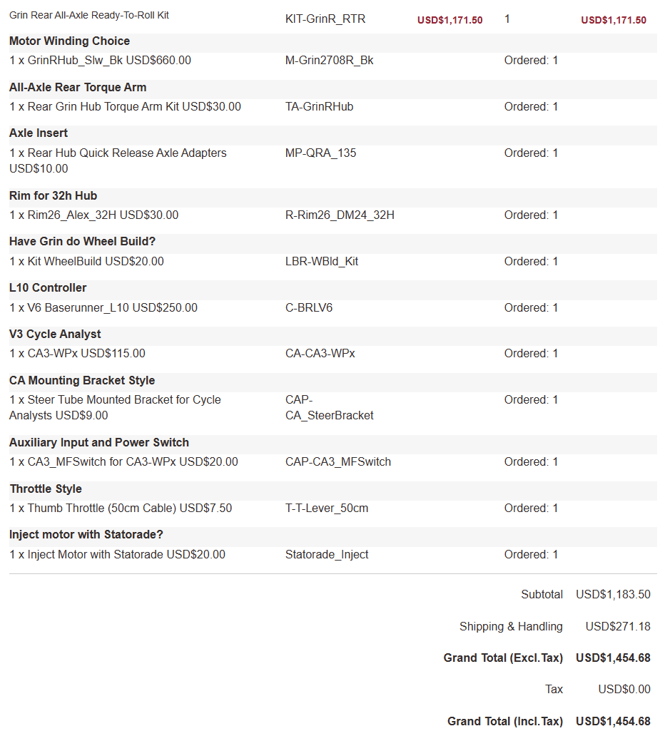Kallis oli, yhteensä veroineen ja tulleineen 1868,71 €. Griniltä Kanadasta tilasin, ei ollut Euroopassa myynnissä vielä. Tuosta listasta puuttuu vielä pinnat 32 $.