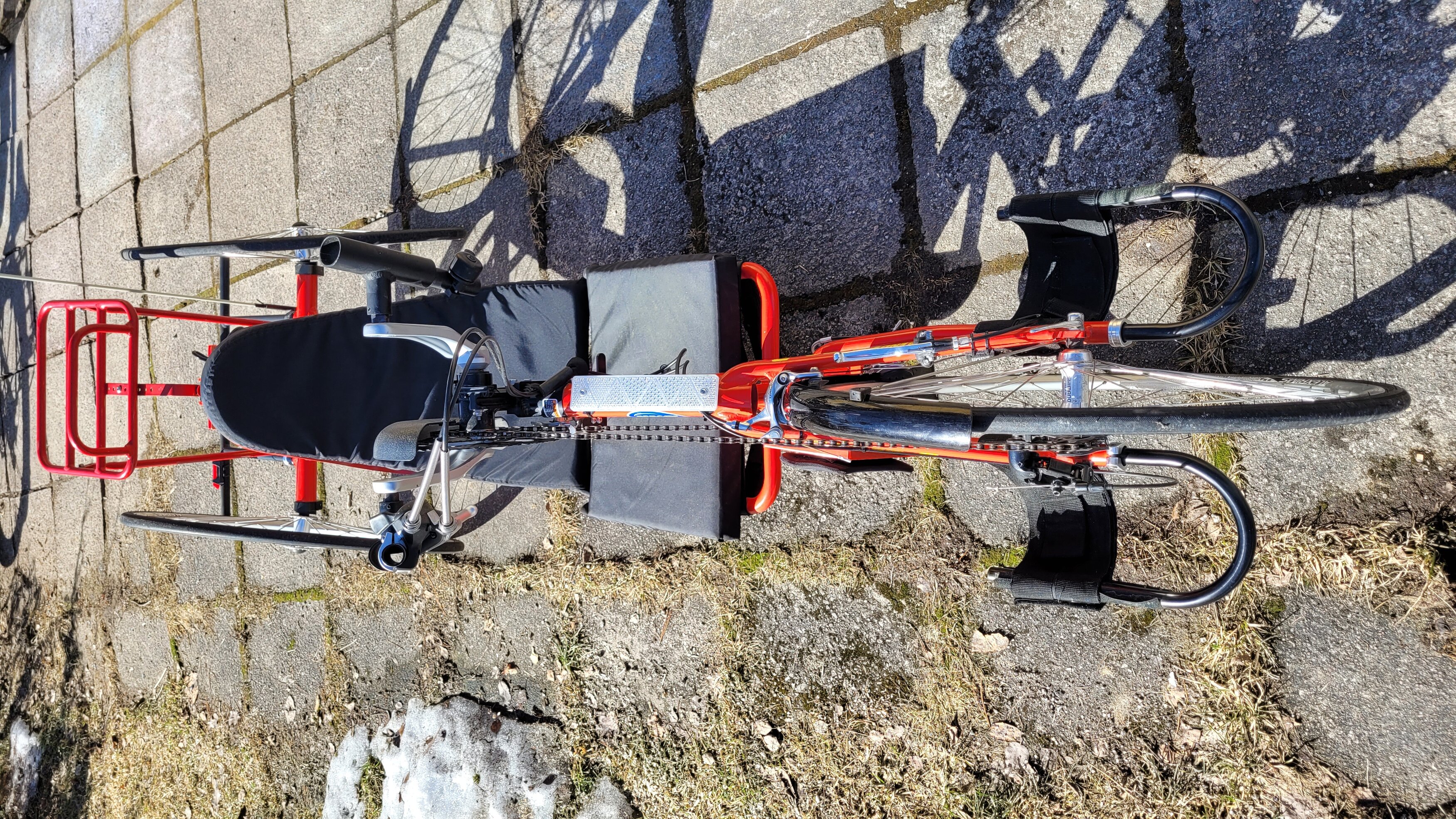 Käsinojapyörä, Deore 27-vaihdetta, 23-571 Kenda renkaat Alexrims 14-571 vanteella, Tiagra vannejarrut, FC-M431 175mm kammet, Pelago tarakka, Sigma 16.16 mittari, Rhinowalk takalaukku, usb-ladattavat valot, juomapullopidike, M-Wave tarvikelaukku, huomioviiri, soittokello ja heijastimet. Kokonaismaksimimassa 114kg. 2. omistajalta. Pyörä on vuodelta 2011. Historialta tunnettu ja vähän ajettu normipyörä harrastajilta. Mukava ajettava, verrattavissa soutamisen raskauteen. Vaijerit juuri vaihdettu. Mukaan halutessa tarvikkeita mm. sorarenkaat. Tarvittaessa toimitus sovitusti. Kuvissa 184cm säädetty ja soveltuu ainakin 160cm ylöspäin.