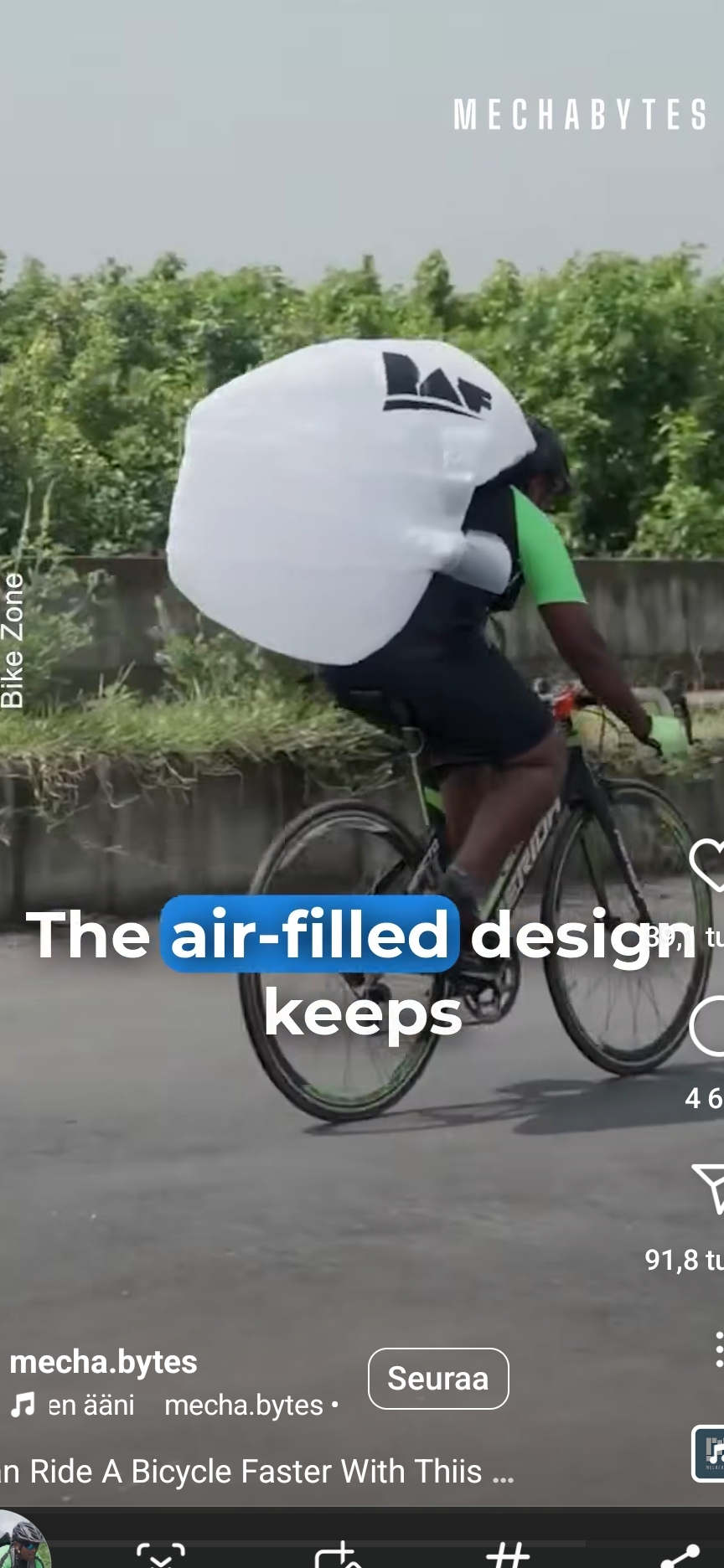 Pystypyörässä tuosta ei ole muuta hyötyä, kuin hiukan pienempi ilmanvastus. Nojapyörässä tuo toimisi, paitsi ilmanvastusen pienentäjänä, myös sateen ja kuran suojana. ![]()