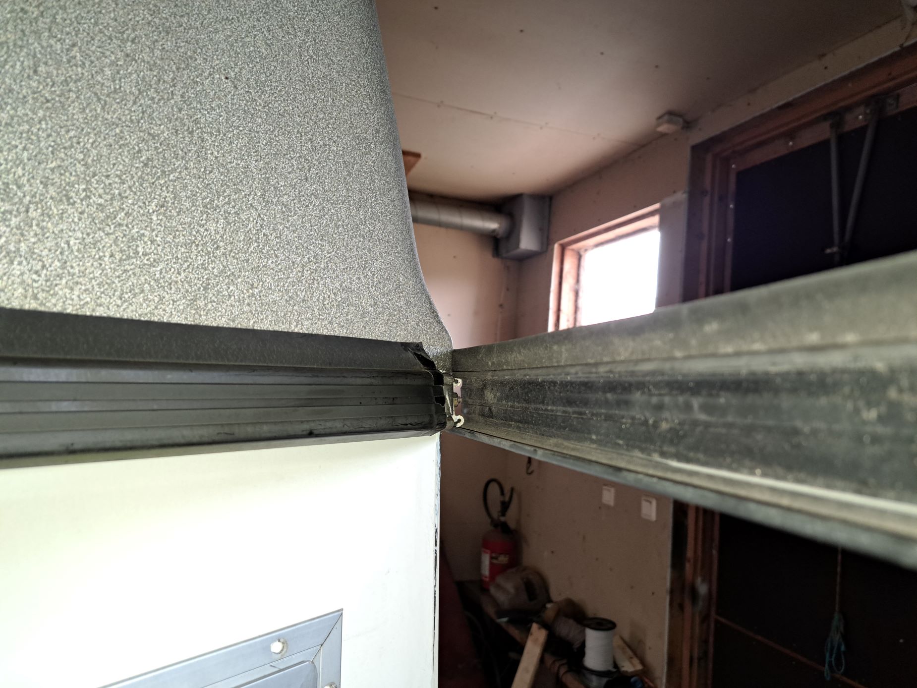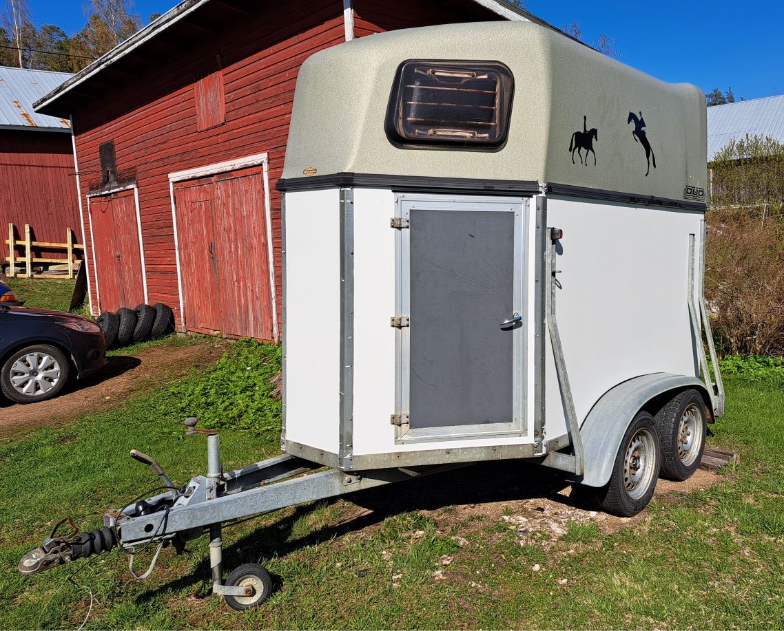Ulkoisesti valmis. Sisältä puuttuu kumimatto ja väliseinä puomeineen, joten nyt olisi sopiva matkailukäyttöön, kun ei ole vielä tarttunut hevosen hajuakaan. Kuvassa näkyy alumiinilistan profiili, johon muovinen koristelista kiinnittyy. Toisella puolella mokasin, kun vedin liimat listan ja kuomun väliin kun en ajatellut että siihen tulee tuo muovilista. Huomasin virheen heti mutta liimoja olisi ollut vaikea kaivella pois, joten naputin listan kiireesti paikalleen ennenkuin liima jämähti. Lista meni tietysti säpäleiksi. Toisella puolella olin tarkempi ja naputin sen puukalikalla avoimesta päästä pujottaen paikalleen. Risankin sain korjattua jesarilla ja mustalla asennusliimalla.