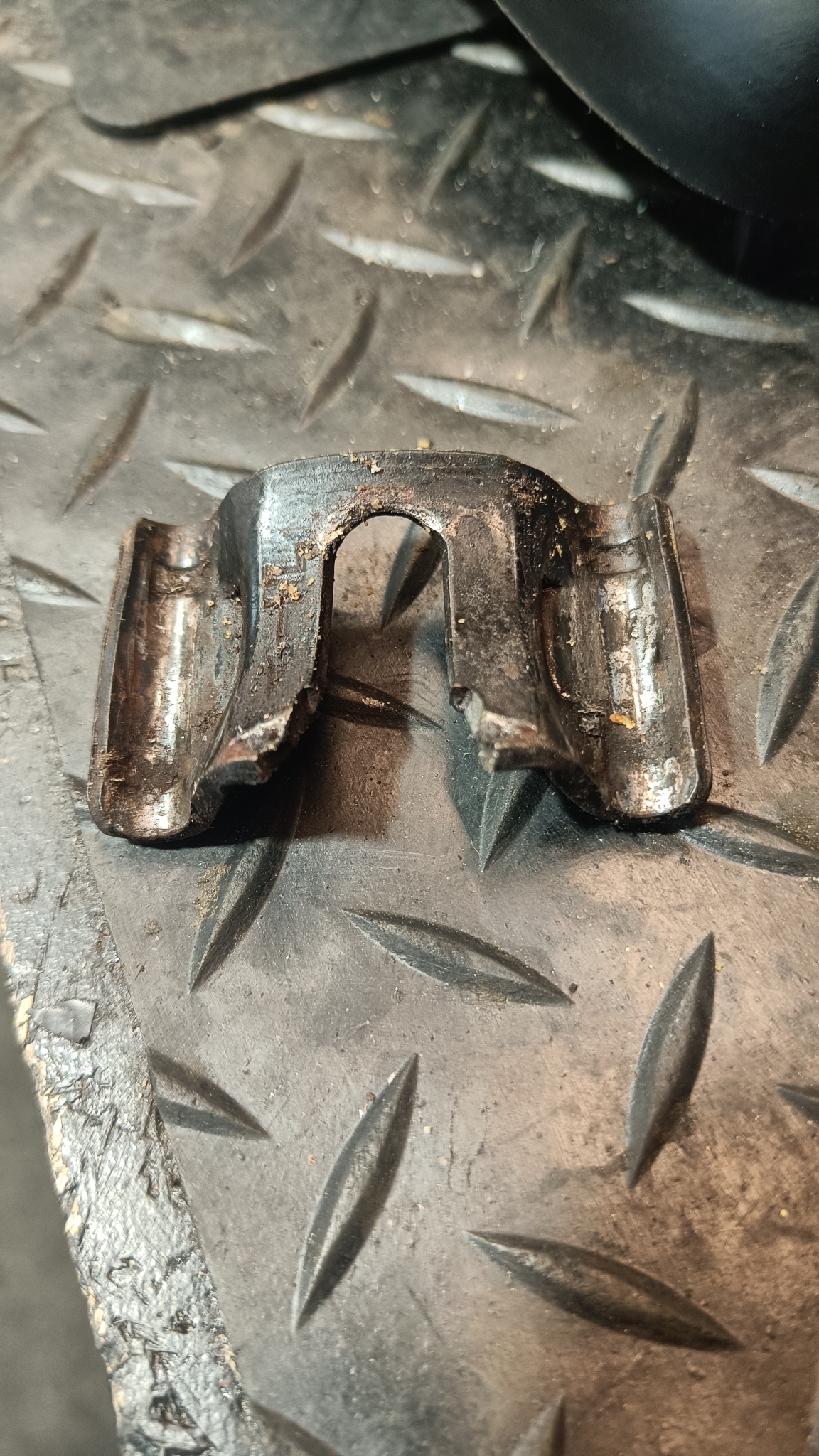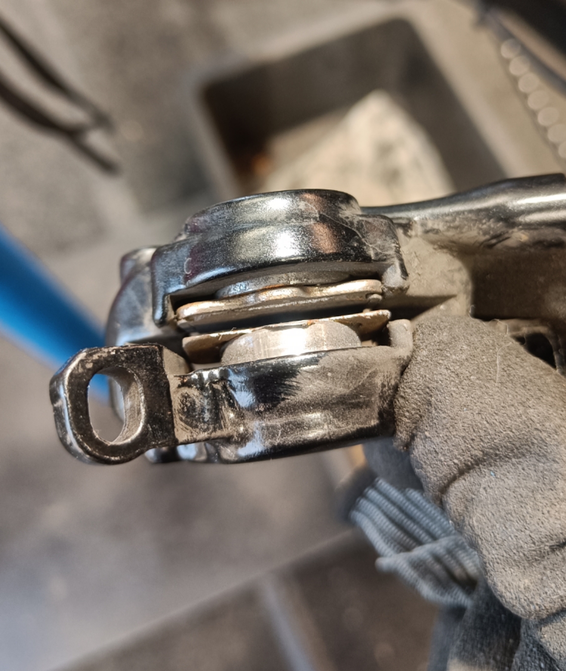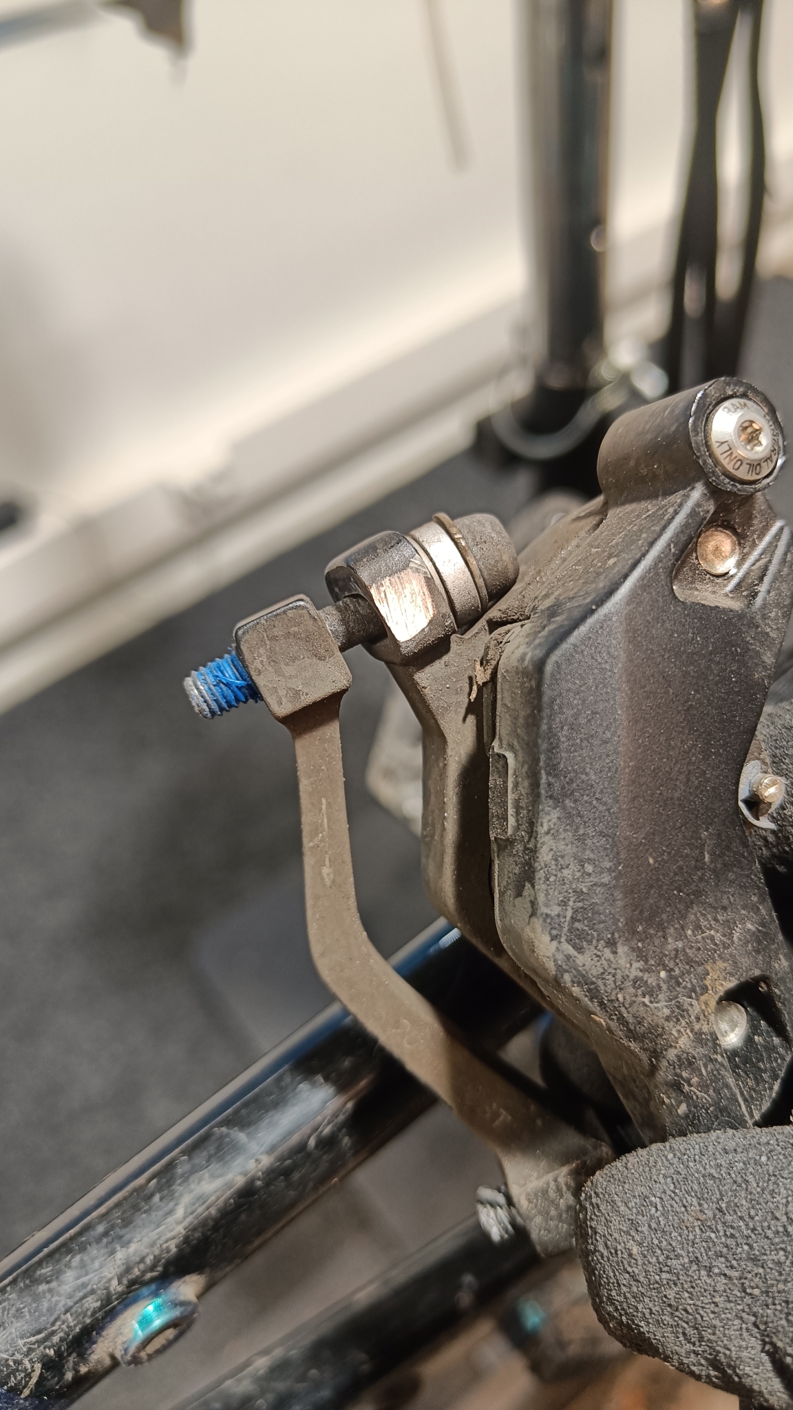 Jarrulevy on syönyt jarrusatulan kulmaa tossa kiinnityspiltin alta.