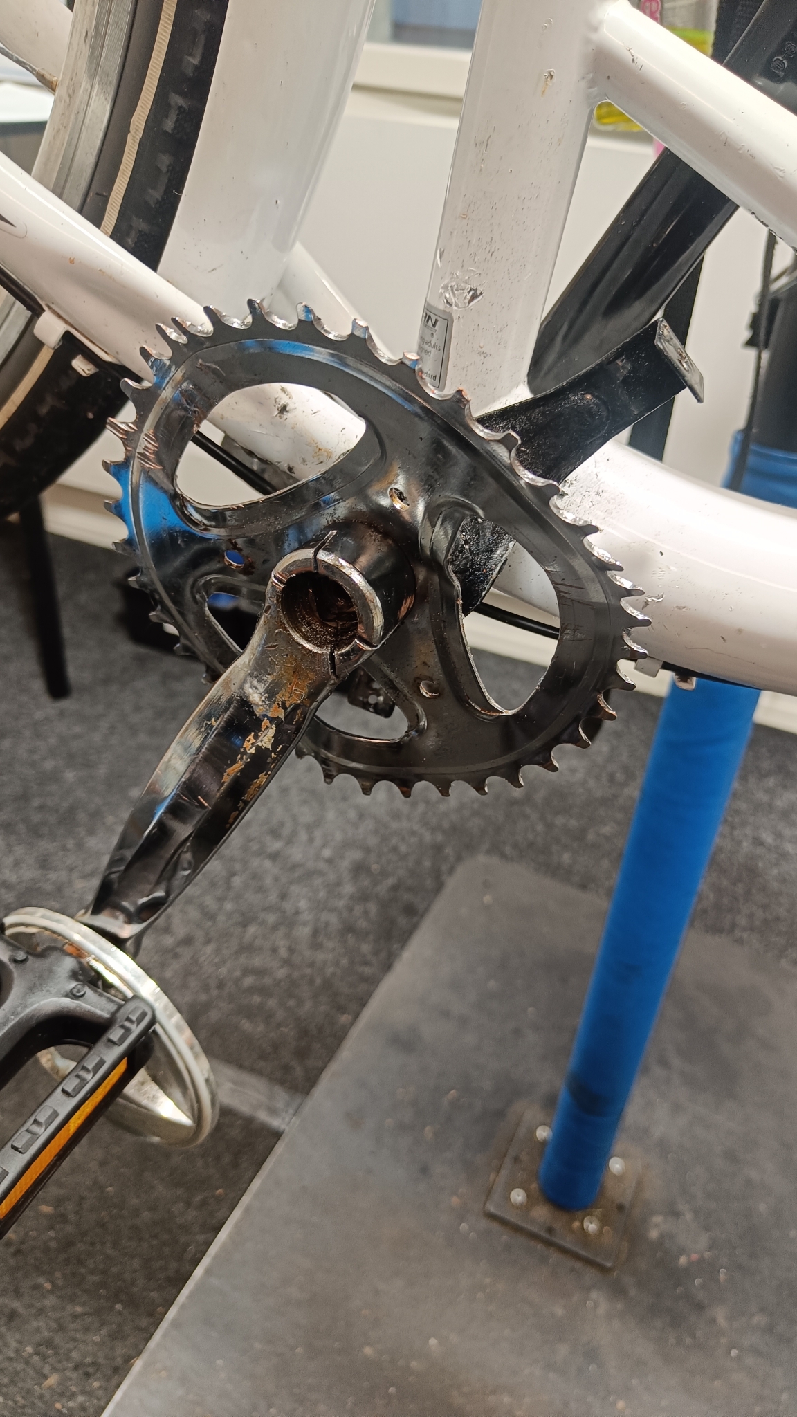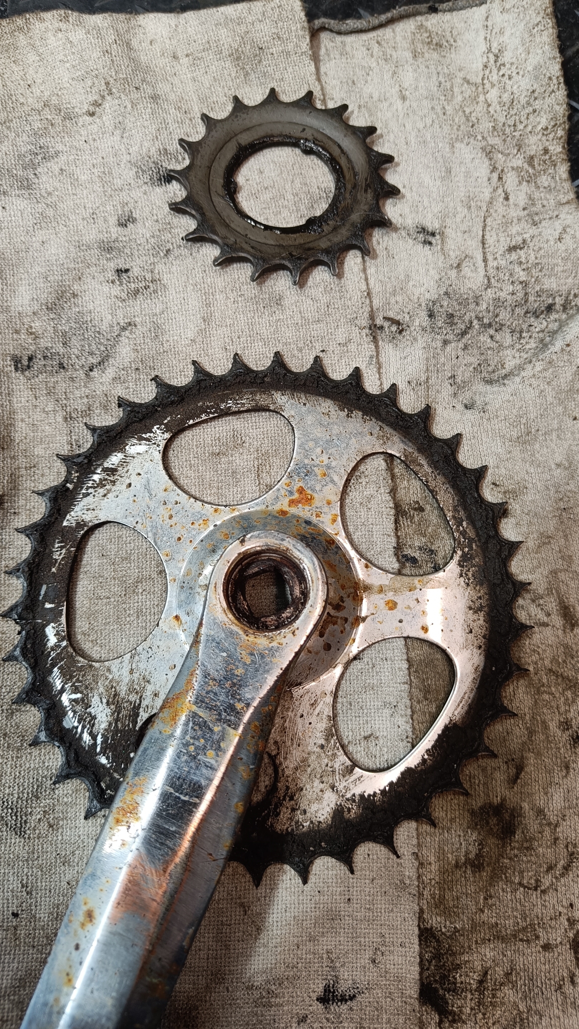 Sitten meillä oli kolmipyöräisessä pystypyörässä toisio ketjun ratas liimattu napaan joka hieman hämmensi.