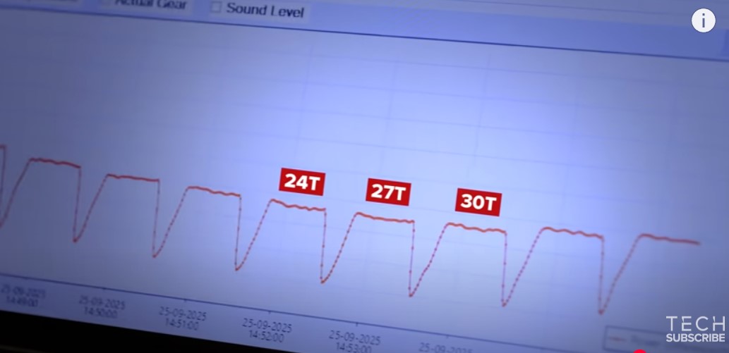 Tässä tuo sama video kelattuna eri vaihteiden hyötysuhdetta mittaavaan kohtaan.